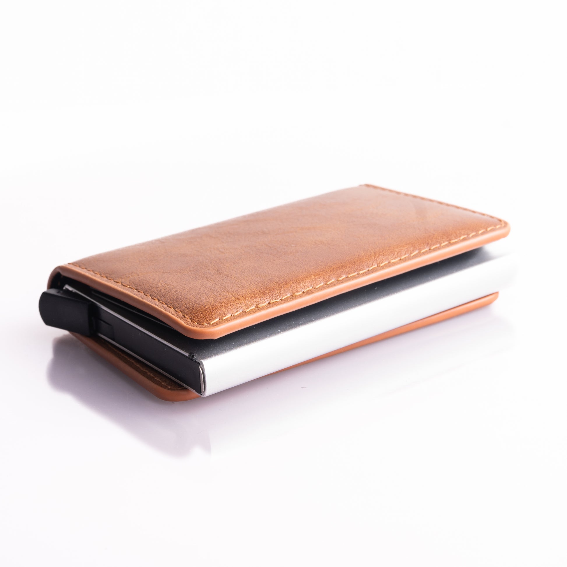 Whenever you would sit on a traditional wallet, the plastic cards will bend and become fragile, therewith increasing the risk of fracturing. This wallet is made of solid PU leather and holds an aluminum casing to house your cards - which is built to last!